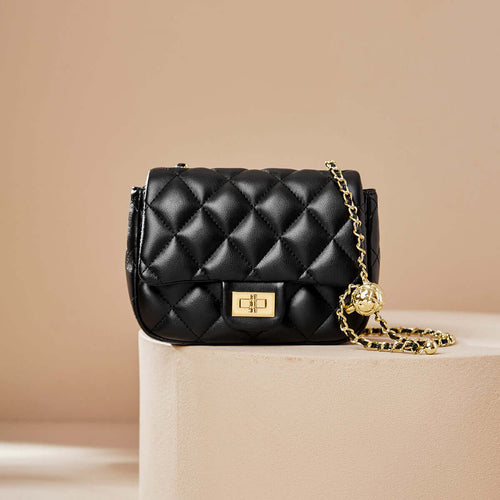 Chic Black Diamond Quilted Chain Leather Bag